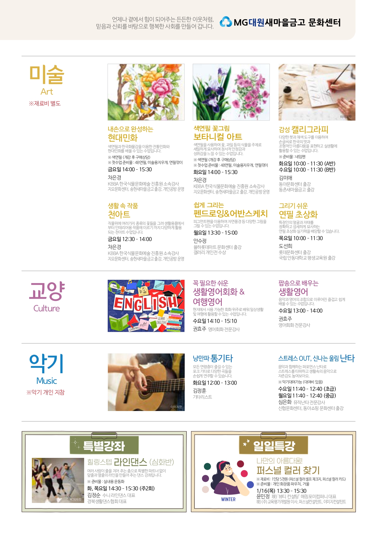 MG새마을금고 문화센터의 프로그램을 수강해보세요!